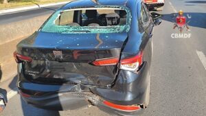 Um motociclista precisou ser hospitalizado na manhã desta segunda-feira (29) após uma batida com um carro no balão do Jardim Botânico, próximo à Ponte JK. O Corpo de Bombeiros Militar do Distrito Federal (CBMDF) foi chamado para a ocorrência.